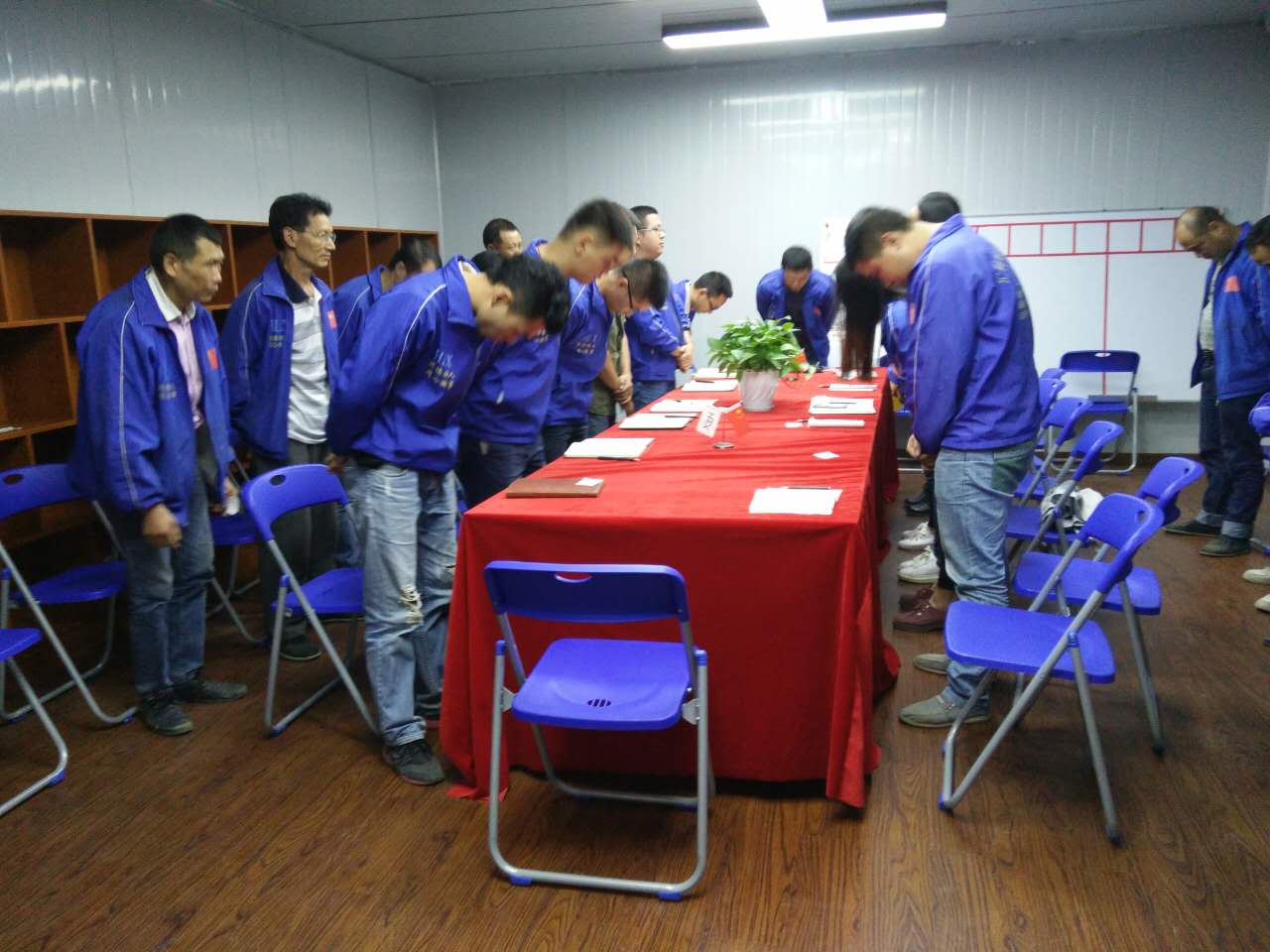 在會議召開前夕,匯利興人集體對企業三道(人道、孝道、商道)進行了三鞠躬,在鞠躬的同時每個匯利興人面孔都是端重而嚴肅得。(因為這是匯利興人對自己對家人對客戶對企業一種負責的態度)。