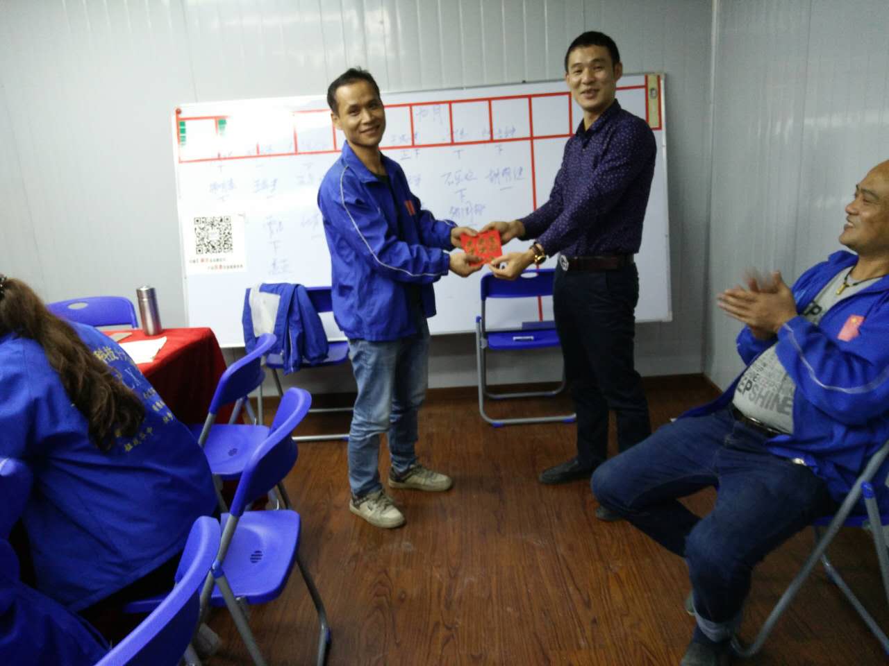 胡總經理(右圖)為每月度最佳奉獻獎榮獲者王成建(左圖)頒發獎金,同時祝賀匯利興家人王成建榮獲雙星(八月、九月)進而也感謝無私奉獻的匯利興家人,感謝他們的辛勤付出,有著每一位匯利興家人的無私奉獻,相信匯利興定會越走越遠。