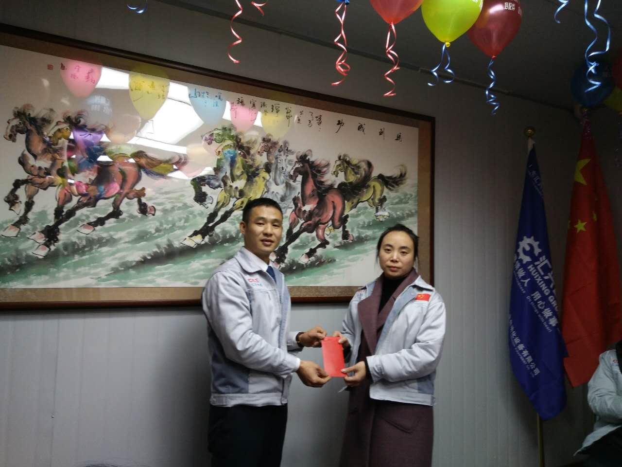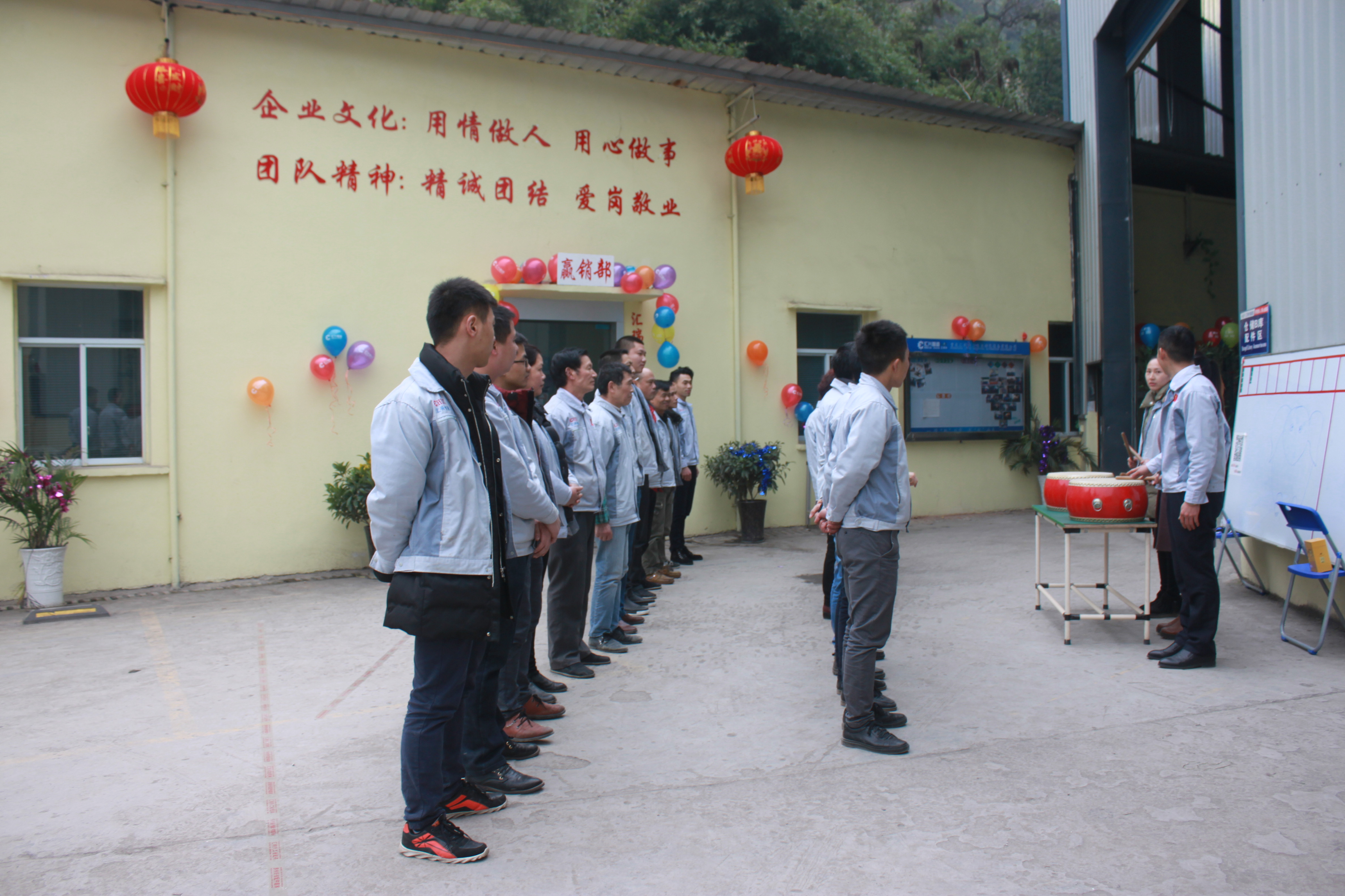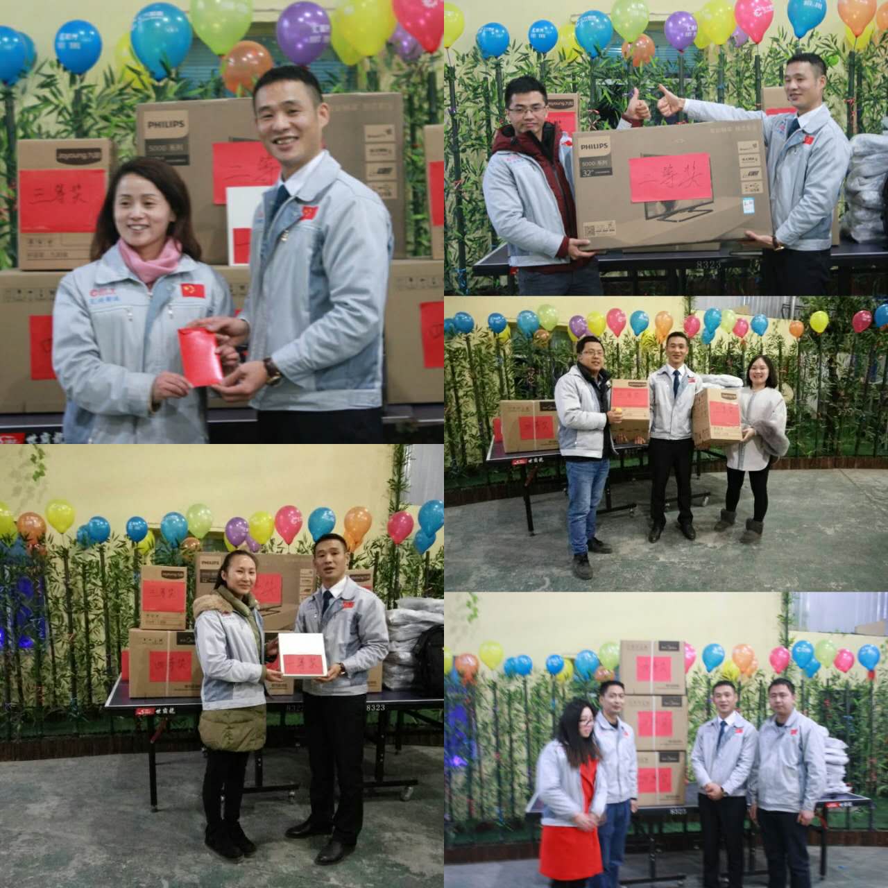 (眾人一條心)游戲準備中,裁判們為選手們系上同心交織的紐帶 匯利興女戰士敲擊士鼓,士氣比武器更重要 會議召開前對企業三道(人道、孝道、商道)行三鞠躬 年度盛會由主持人劉園園上臺正式拉開序幕,會議前我們一起回眸2016年工作縮影,回眸了與匯利興大家庭的交集。 會議上,胡總經理表示:2017年新起點的一系列規章制度、員工薪酬福利制度、員工職位考核制度,回首了2016年匯利興的成長與發展,3月14日公司搬址、傳祺戰車加入、倉儲及系統完善,2017年展望與目標。同時表示感謝大家在2016年中的包容與支持同時也相信大家在2017年能一起攜手完成我們的目標及挑戰。此后各部門代表發言總結2016年展望及2017年每月業績目標。 匯利興全體戰士一起回眸2016年與匯利興大家庭的交集 隨著年會的氣氛越來越濃厚,接下來由胡總經理一一頒發獎金及揭曉年會大獎獲者。獎金頒發:最佳付出獎、最佳責任獎分別是劉元平與石樂歡戰士,在此感謝兩位家人的奉獻與付出。 在你們愛家的同時匯利興這個家會更加愛你們。 胡偉路總經理與“最佳責任獎”榮獲者石樂歡同框合影 胡偉路總經理與“最佳付出獎”榮獲者劉元平同框合影 年會大獎揭曉,胡總經理一一揭曉大獎獲者,此次大獎由26個英文字母之一相繼而出,獲獎組圖以下: 胡偉路總經理與年度盛會大獎獲得者合影圖(特等獎、一等獎、二等獎、三等獎、四等獎) 年度盛典活動逐漸接近尾聲,活動以“畫鼻子”游戲拉開帷幕。即使看不見光明,只要心中有信仰、信念那也將是一個通往前方的航燈。 匯利興大家庭年會團圓飯圖貌 隨著年飯的結束,2016年盛會圓滿結束。回首過去,放眼未來,2016年已逝去的,我們不再留戀,2017年的到來我們去迎接;因為在新的一年有我們的目標及夢想我們要一同去創造去實現它,實現中國智能裝備全產業鏈集成智造標桿,繼續引領行業的發展。同時在此感恩所有對匯利興關懷及支持過的您們,正是因為有了您們的支持才得以讓匯利興茁壯成長,才能讓匯利興在行業道路上越走越穩。感恩您們......