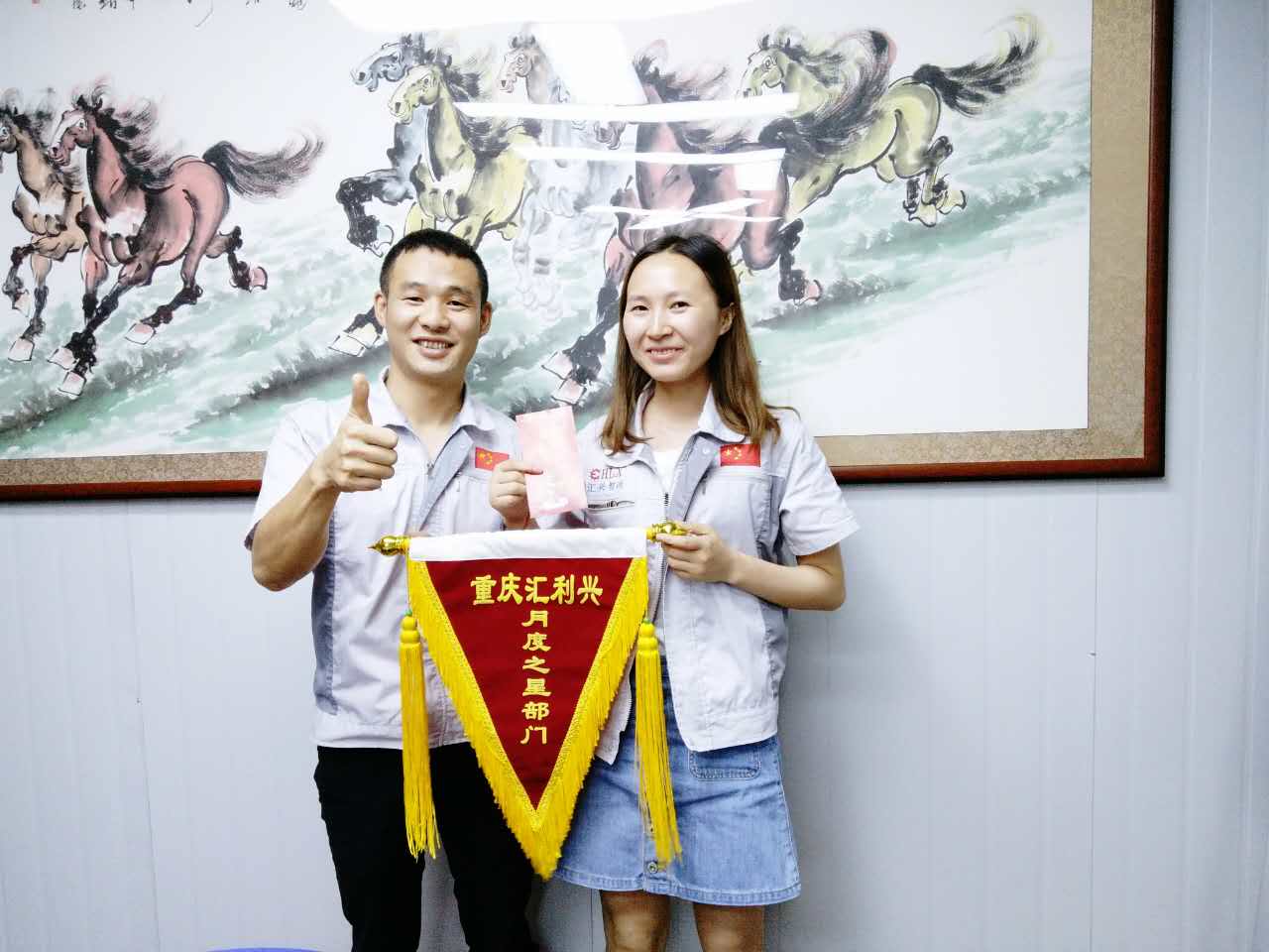 胡總經理(圖左)與月度部門“客服部”代表人蒲經理(圖右)合影