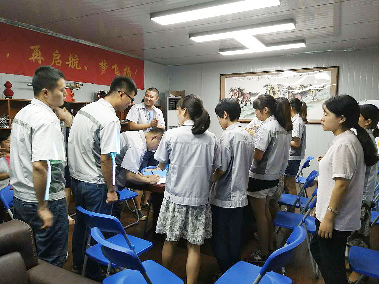 會上,首先大家對新同事的加入表示熱烈的歡迎,其次由張副總為新同事贈送匯利興紀念小禮物;觀看(你想過放棄嗎?)小視頻,面對一切永不放棄、永拼到底的加油精神!然后各部門做簡短自我介紹,不斷認識自己、了解自己了解他人創(chuàng)造一切的不可能,最后會議以每月度之星及月度部門的選舉而落下帷幕。