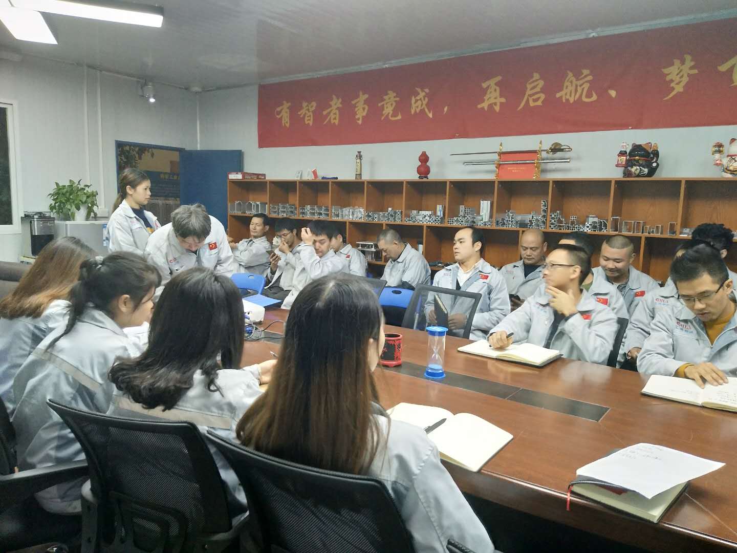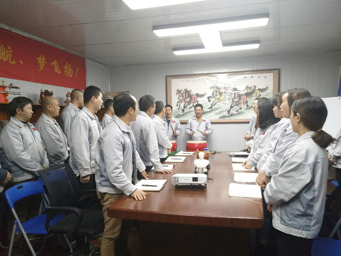 會議召開前,大家依次對企業(yè)三道(人道、孝道、商道)行三鞠躬,并督促我們應(yīng)時刻感謝自己、感謝父母及我們的合作伙伴;同時進(jìn)一步也敲響了匯利興士氣鼓,士氣比武器更重要進(jìn)而不斷的鼓舞自己鞭策自己,隨后會議正式開始。