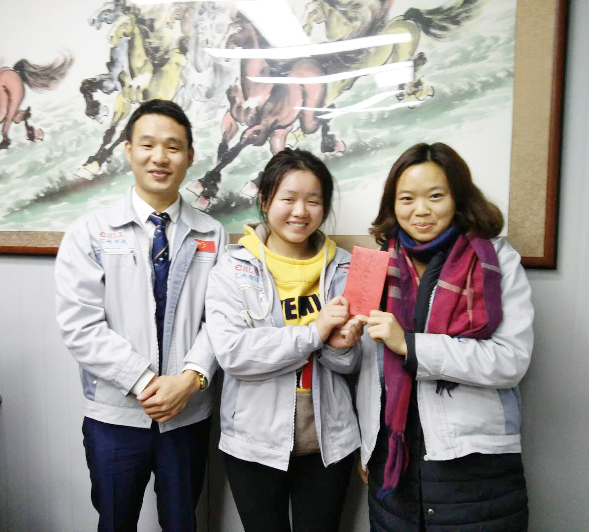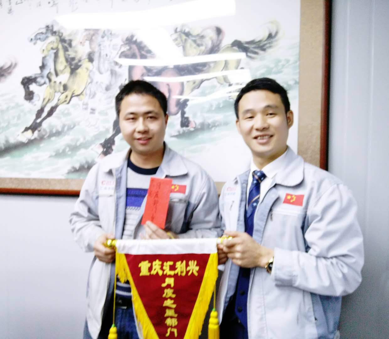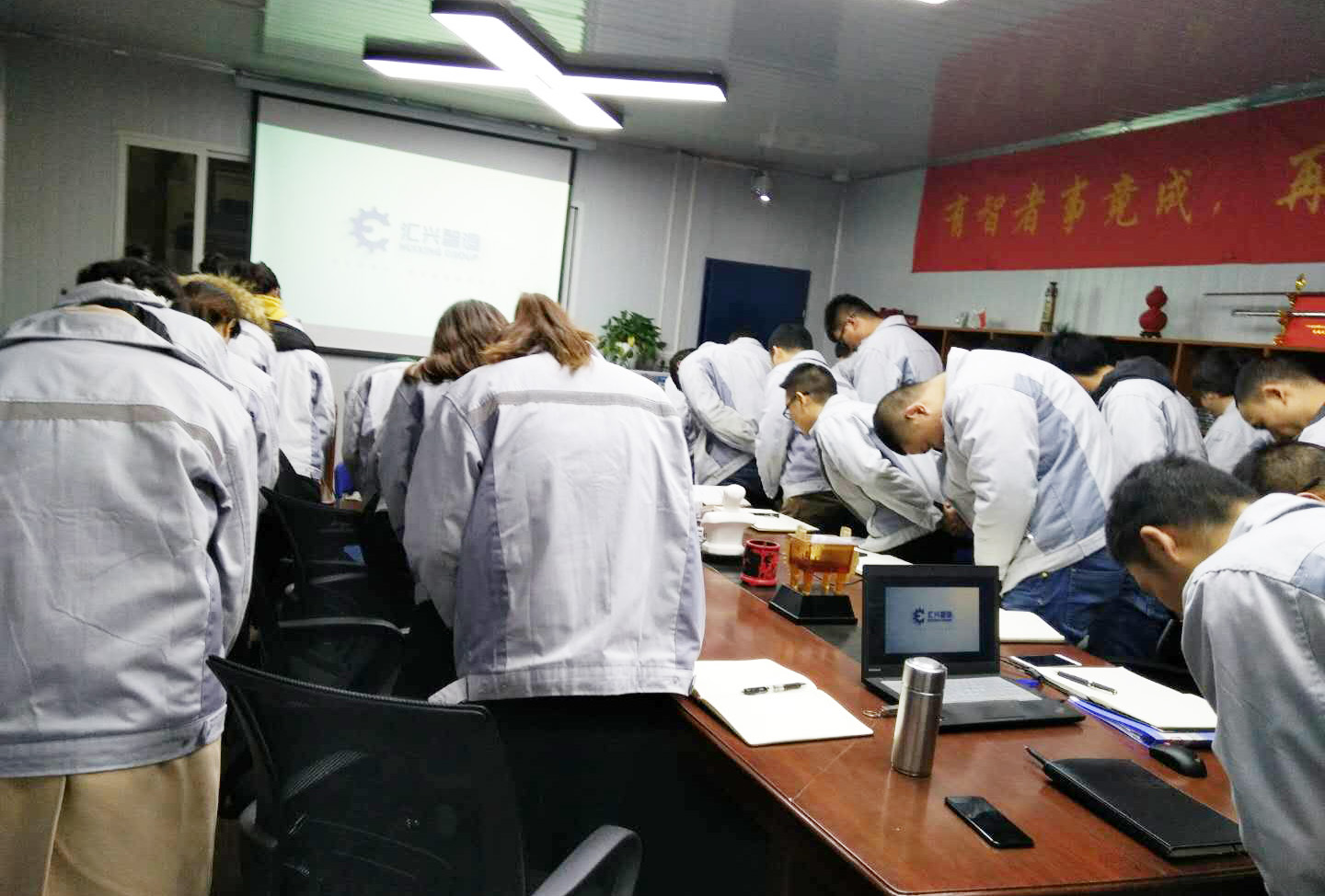 長(zhǎng)風(fēng)破浪會(huì)有時(shí),直掛云帆濟(jì)滄海。12月21日晚,我司全體人員在匯利興學(xué)校召開(kāi)十一月份月度會(huì)議,會(huì)議進(jìn)場(chǎng)依次由自我價(jià)值估秤及簽到入場(chǎng),由張副總主持。 全體員工觀看公司相關(guān)視頻及聆聽(tīng)匯利興之歌 全體人員宣導(dǎo)企業(yè)理念并向企業(yè)三道(人道、孝道、商道)行三鞠躬 會(huì)上,首先依次例行對(duì)每月度最佳部門(mén)及個(gè)人的選舉及頒發(fā)獎(jiǎng)金;其次胡總經(jīng)理發(fā)表講話,表示到2017年12月28-30日進(jìn)行年度盤(pán)點(diǎn),然后談到公司前進(jìn)的步伐、隊(duì)伍的壯大,并表示大家在一起努力工作是難能可貴的,同時(shí)進(jìn)一步談到2018年度員工相關(guān)福利事宜等。最后張副總作相應(yīng)總結(jié),談到公司在大家共同的維護(hù)及努力下,更加的規(guī)范并表示相信大家在后面的工作中會(huì)更加的努力。 月度部門(mén)物控部主管徐財(cái)華(圖左)與胡總經(jīng)理(圖右)同框合影 月度之星胡前敏、姜英(圖右)與胡總經(jīng)理(圖左)同框合影