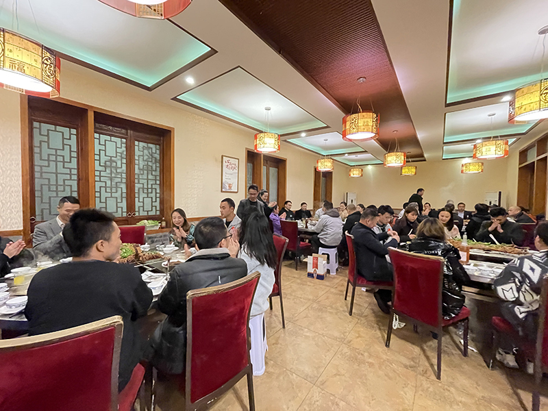 全體員工起立肩并肩,一起唱響“只要我們一起努力,相信我們一定會創造奇跡”,字里行間都激勵著在場每一位員工一定要奮勇前進,歌聲嘹亮,振奮人心! 伴隨時間的推移,也逐漸拉開了會議的下半場,冬天里的第一只羊。公司用最貼心的方式向每一位員工表達著自己的愛,讓大家在寒冷的冬天,不再畏懼寒冷,將暖暖的祝福,送到了大家的眼前,融化在火熱的烤羊里。香味四溢的正宗的草原風味烤全羊,經過專業師傅的精心烤制,油汁慢慢的從金黃的羊肉中沁出,羊肉也因為火的炙烤而變的金黃,香氣四溢,讓大家一同體驗了大口吃肉大口喝酒的豪放之情,讓大家感受到舌尖上的美食、味蕾的跳動,并訴說著從舌尖到心尖的蛻變,從走胃到走心的真情交流;大家圍坐在一起大快朵頤,席間談笑風生,盡展妙趣,共同舉杯歡慶這美好時刻! 有一種浪漫叫并肩作戰,有一種力量叫全力以赴,有一種果敢叫奮不顧身。無論前方等待著什么,我們仍舊拼搏向上,拿出我們最佳的狀態,永遠堅定地向目標邁進,相信所有堅韌不拔的努力,都會得到勝利的回饋!加油!